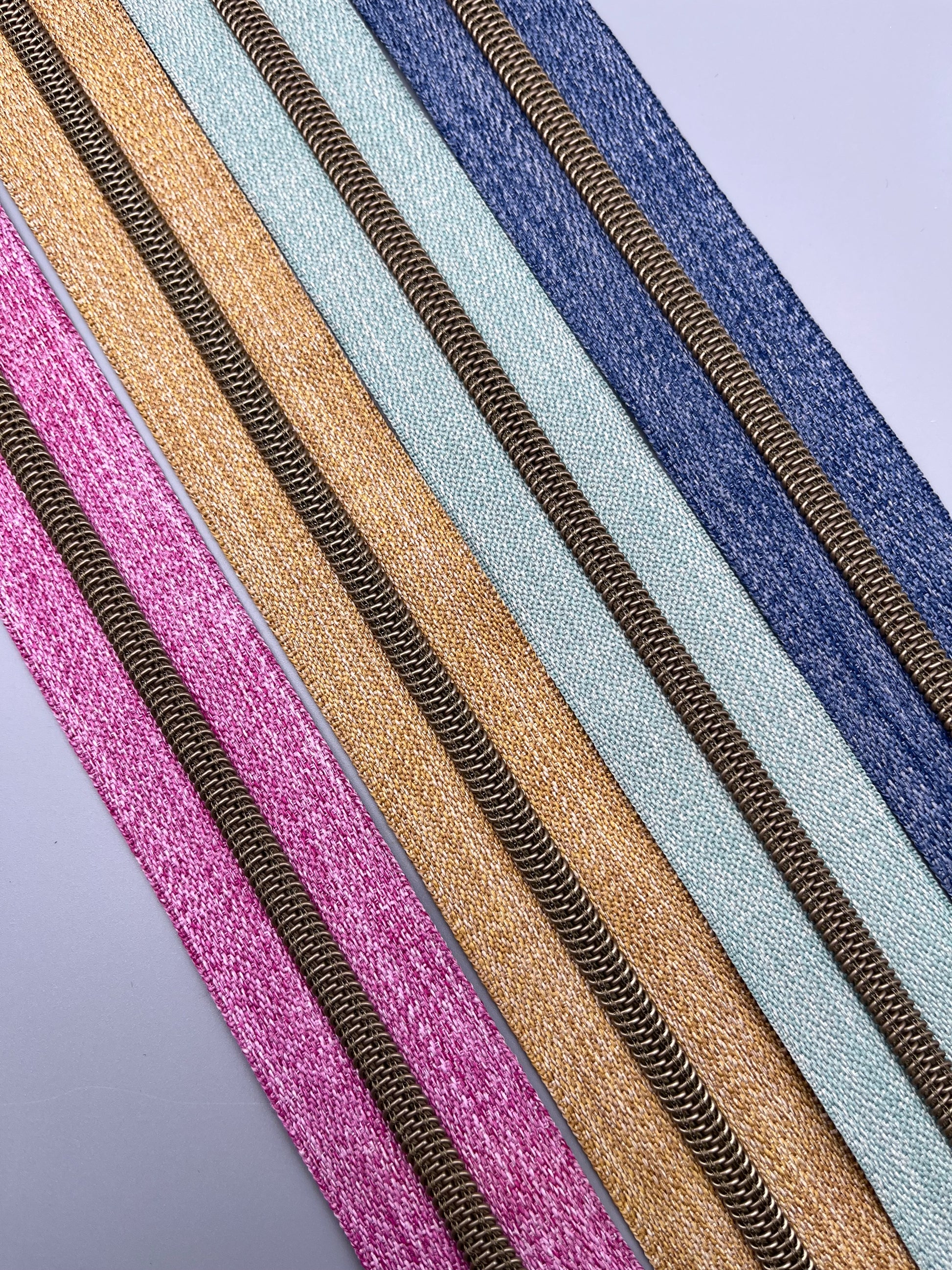 This zipper tape gives you the look of metal with the ease of nylon! The nylon coil has a beautiful metallic shine — perfect for adding a professional touch without the bulk or stiffness of real metal teeth.