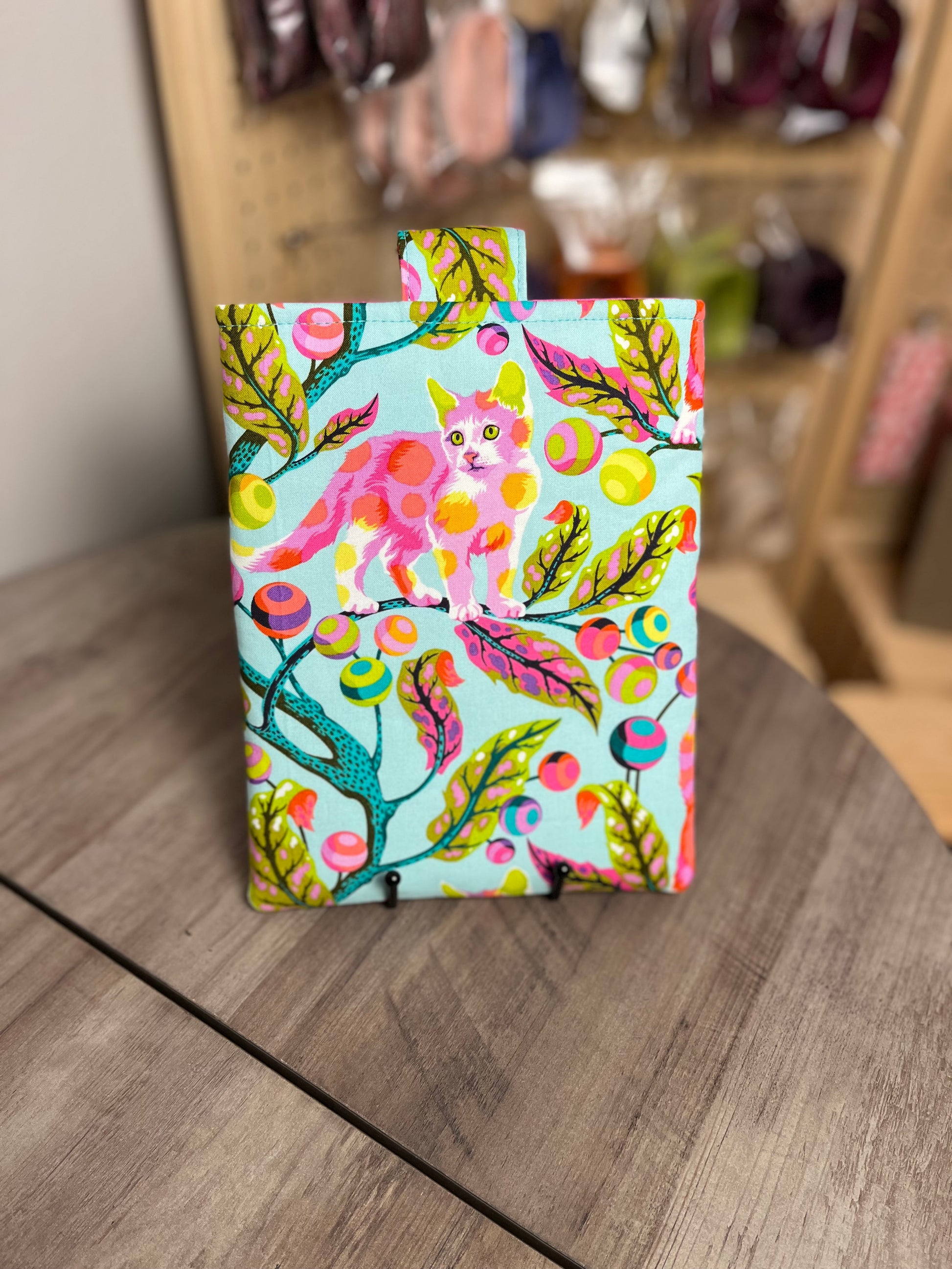 Add a pop of personality to your reading routine with this vibrant, one-of-a-kind book sleeve. Designed to protect your favorite reads in style, this sleeve combines bold color with practical details.