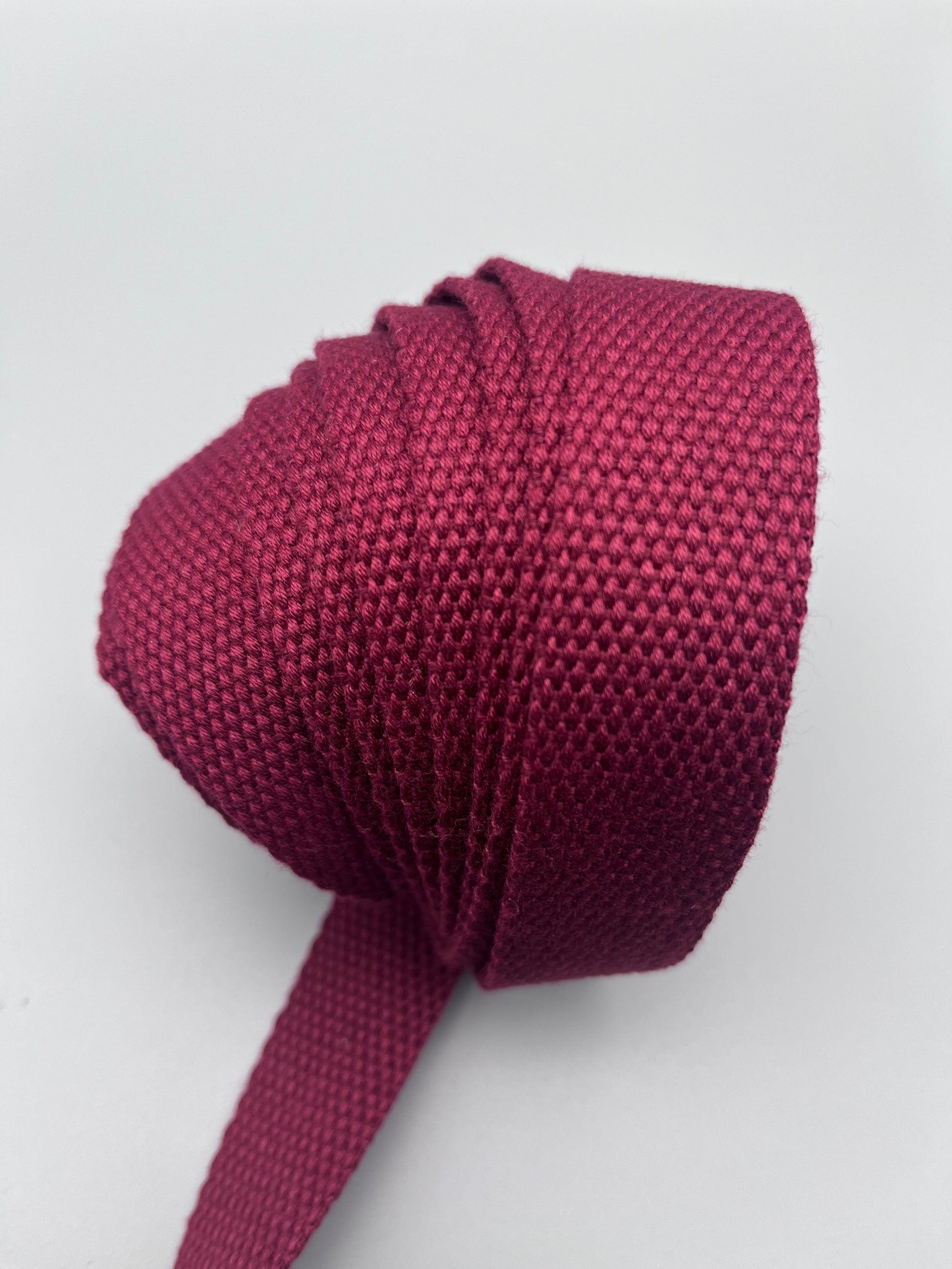 Add a pop of rich color to your projects with our Cranberry Crush cotton webbing! This deep berry-red hue brings warmth and personality to any handmade creation — from tote bags and belts to key fobs and straps. Made from 100% cotton, it’s durable yet soft to the touch, easy to sew, and perfect for everyday or statement accessories.